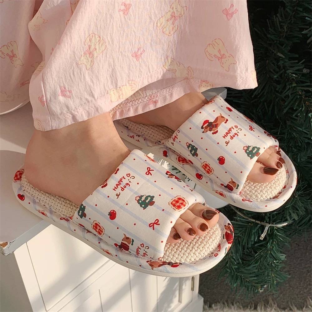 【中国团购】SGT104少女心吸汗棉麻拖鞋